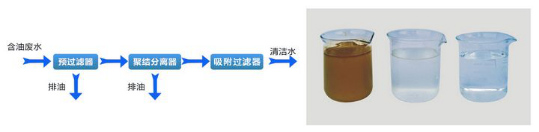 含油廢水處理設(shè)備采用全物理法、可靠、方便、的去除及回收含油污水中的分散油和乳化油,使處理后的排放水達到或超過《GB8978-96污水綜合排放標準》一級排放的要求(含油量小于5mg/L)。